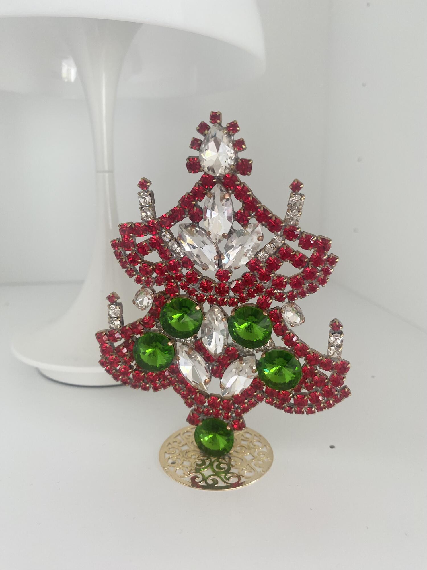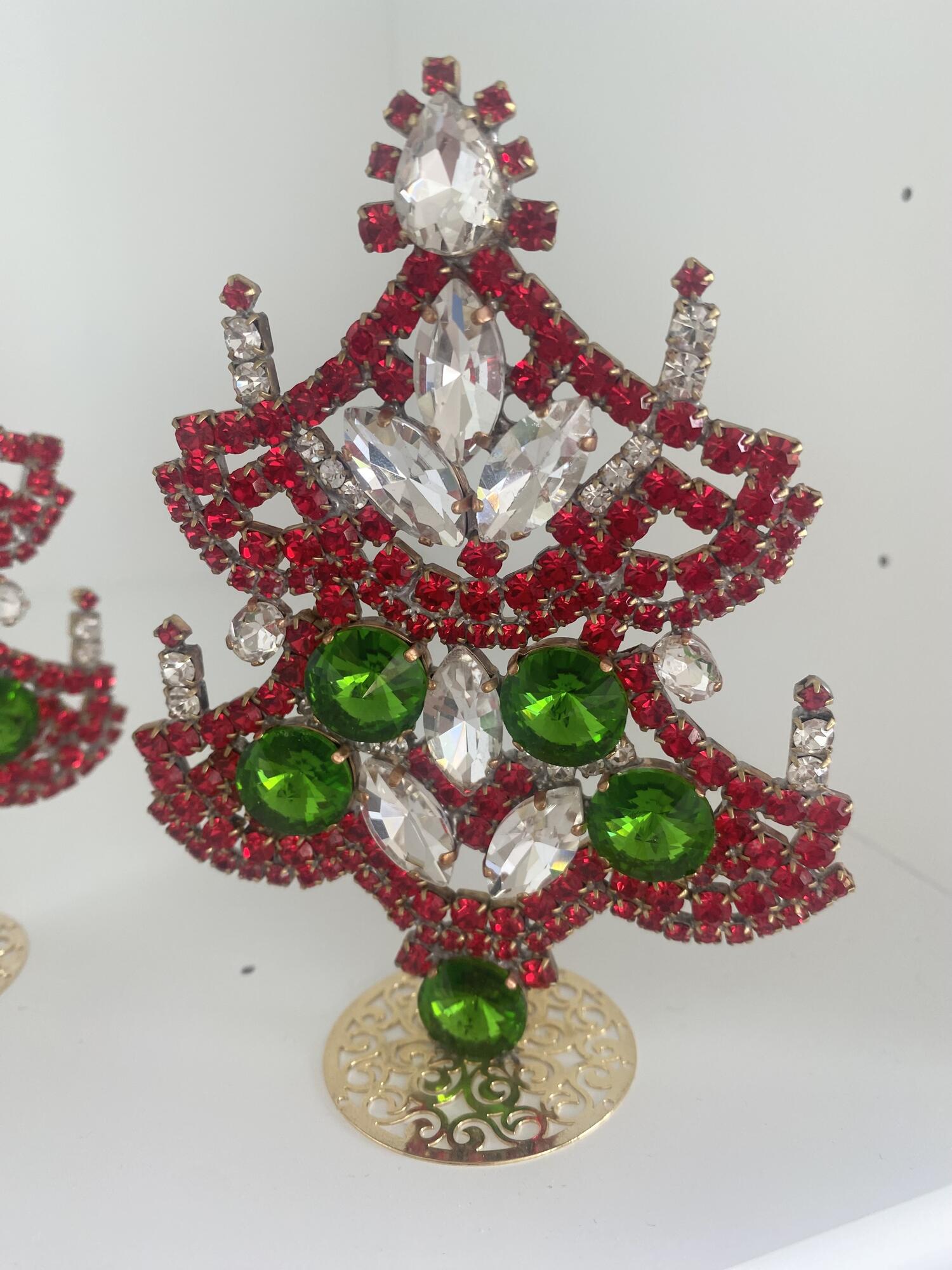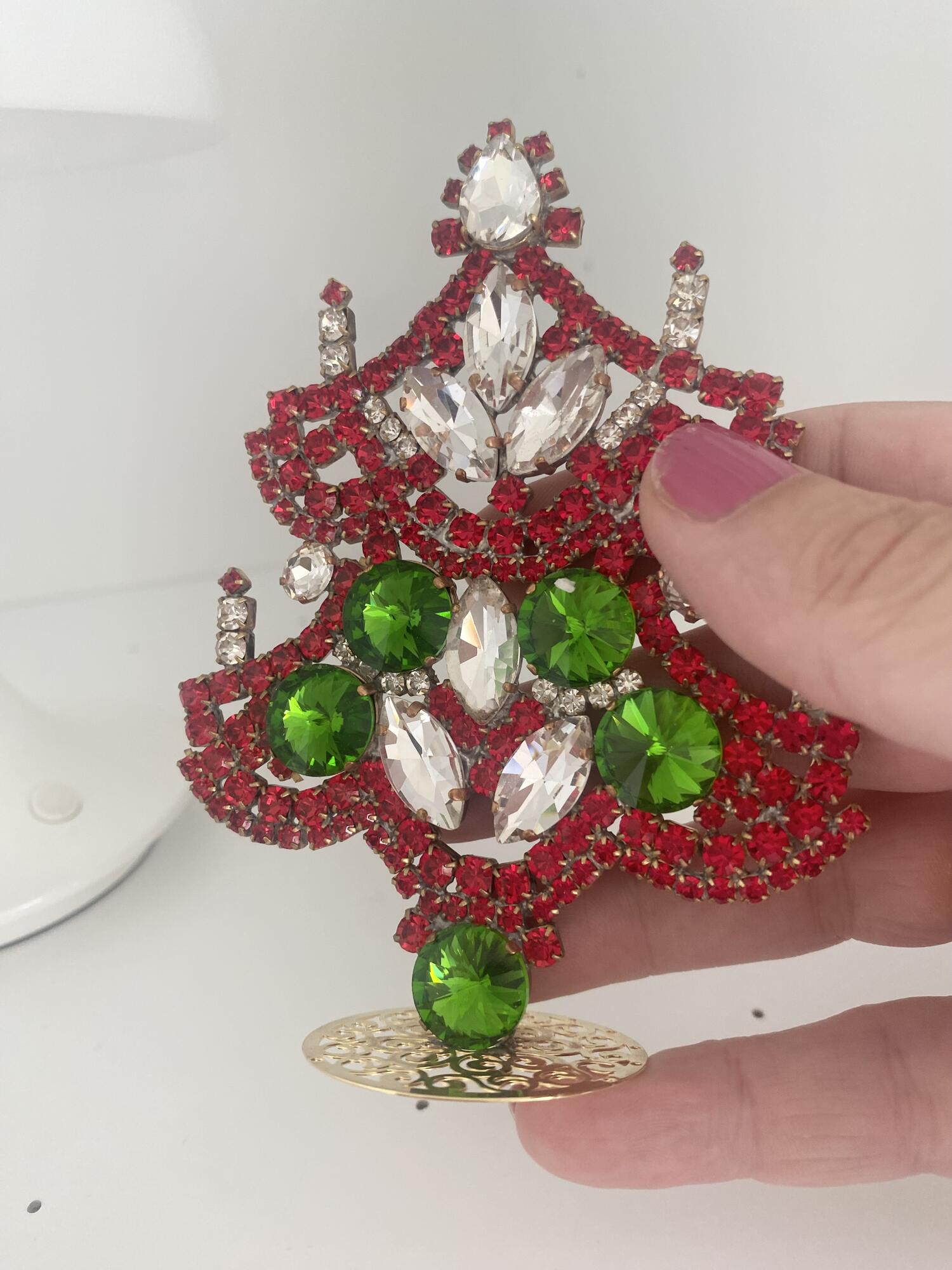 Håndlavet Julepynt - Juletræ i rhinsten, unika fra Tjekket.