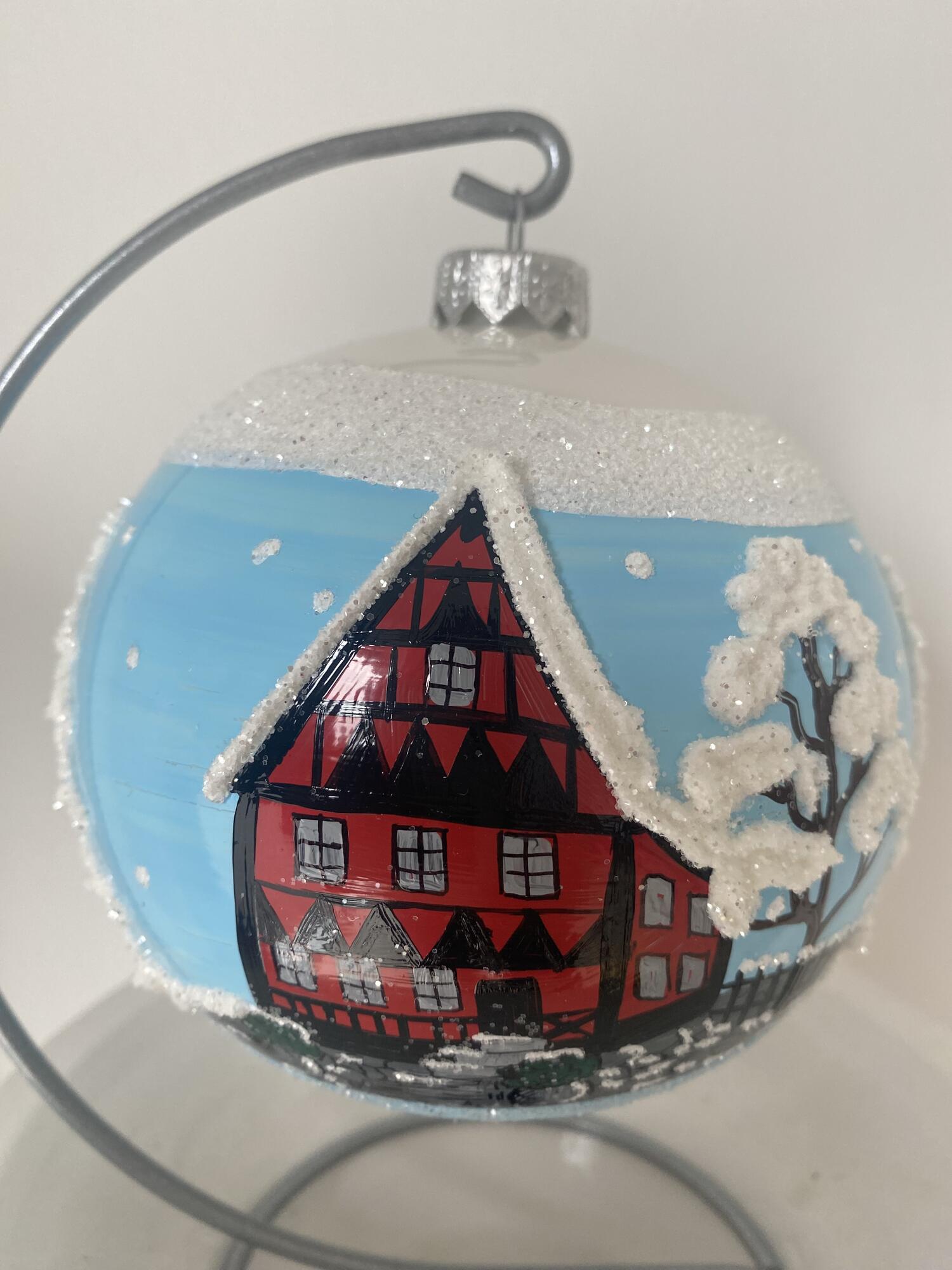 De håndmalede Kolding-motiver fremhæver byens charme og historie og gør kuglen til både et dekorativt element på juletræet og et særligt samleobjekt.